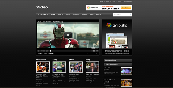 22. Video. Замечательная тема для сайта с видеоматериалами, а контент-слайдер сразу позволяет ознакомиться с последними «новинками». Демо