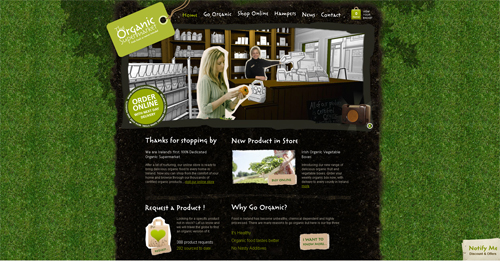 15. Сайт ирландского магазина Оrganic Supermarket — предлагает интересное решение. Перед пользователем как будто виртуальным магазин, по которому ходят покупатели, а продавщица копощиться возле прилавка. Мы даже можем услышать, какие объявления звучат в магазине, нажав на радио в левом углу экрана-витрины. Реализовывается это все отчасти благодаря технологии флеш.