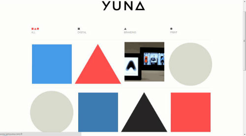 23. Iamyuna. На этом сайте каждая геометрическая фигура открывает новую работу, или новую рубрику.