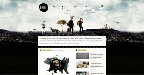 3. Racket — чрезвычайно креативная и необычная австралийская студия дизайна, специализирующаяся на неординарном визиальном и экологическом дизайне. На этом сайте можно застрять надолго, изучая каждую деталь интерфейса и то, куда та или другая надпись или картинка могут привести пользователя.