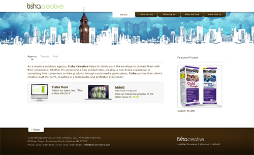 8. Интересный сайт студии Tisha creative , на котором как бы протекает обычная жизнь Лондона — меняется день и ночь, а меню для удобства пользователей подсвечивается белым.
