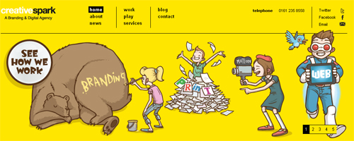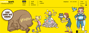 27. Creativespark. Черно-желтый сайт, и меню подсвечивается соответственно. Кроме того, не забудьте клацнуть на надписи на рисунках.