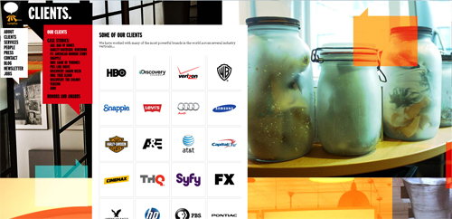 11. Campfirenyc. Меню на этом сайте можно рассматривать с разных ракурсов. Интересно, что само меню оформлено в виде характерного прямоугольника, который создает аллюзию с прямой речью, что часто используется в комиксах. Однако, это не главное. Самым интересным элементом сайта является реализация каждой из рубрик меню — рубрика открывается не вниз, и не на ширину всей страницы сайта, как стоило того ожидать, а вправо одновременно в две колонки.