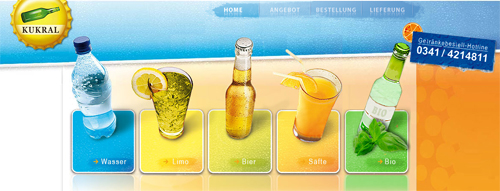 14. Добро пожаловать в бар Getraenke-kukral! Хотите воды, лимонада, пива или сока? Меню на этом сайте реализовано посредством использования больших иконок, которые олицетворяют тот или другой напиток. При наведении контур меню слегка подсвечивается темным цветом.