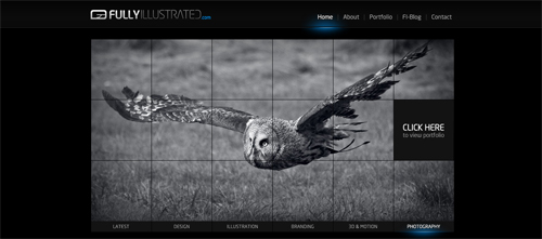 6. Cтудия Grafik. Работы представлены как плиточки. При этом при выборе каждой отельной рубрики (фотографии, веб, бренды), все работы «гаснут» и на экране остаются яркими только те, которые относятся к той или другой рубрике. Помимо этого существует еще и выпадающее меню вверху страницы сайта.