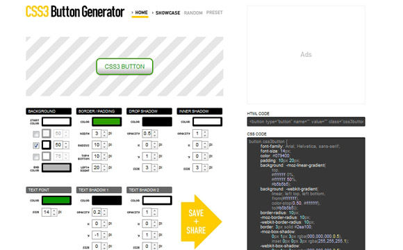 CSS tricks button maker — еще один простой в использовании генератор кнопок (нельзя сохранять кнопки).