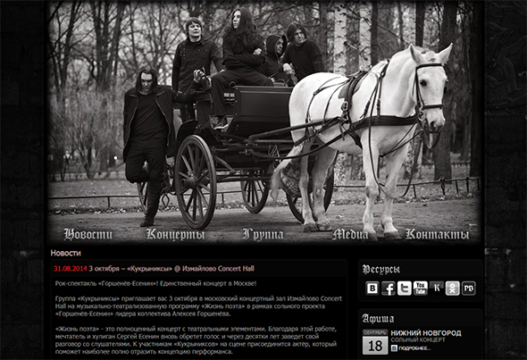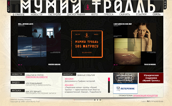 Музыка и Интернет уже не могут существовать друг без друга. Некоторые музыканты сетуют на пиратскую деятельность на просторах Сети, другие же благодарят ее за собственную популярность и возможность распространения своего творчества. В любом случае, ни одному музыканту не помешает сайт, на котором можно посмотреть расписание концертов, узнать о дате выхода нового альбома, познакомиться с более ранним творчеством. Мы собрали сайты отечественных групп, на которые заходят настоящие и будущие поклонники.