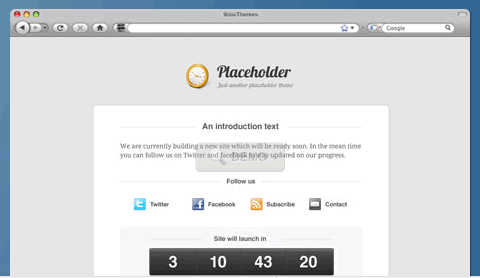 Эта тема замечательно подойдет вам, если ваш сайт находится в разработке, и вам просто нужно сообщить посетителям, как они могут оставаться в курсе событий и сколько еще осталось времени до запуска сайта в работу.