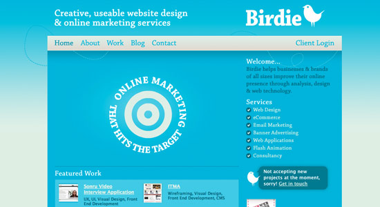 Как видим, цвет спокойствия, стабильности, единства, чистоты, понимания очень широко используется в веб-дизане. Различные оттенки синего достаточно легко сочетаются с другими цветами. Еще несколько примеров: