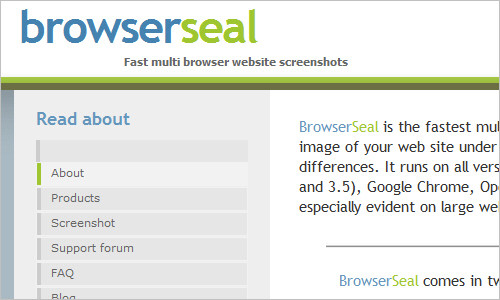 BrowserSeal – это новый инструмент. Он чем-то похож на SuperPreview. Это приложение также используется на локальном компьютере, и скорость вполне впечатляет. Браузерная поддержка, к тому же, достаточно обширная. Кроме всем известных IE, Firefox, Safari, Opera и Chrome, приложение также поддерживает почти любой браузер, на котором вы бы захотели протестировать свой сайт. У приложения есть две отличных функции, которые позволяют выделить инструмент из всего списка: отдельная поддержка браузеров и интерфейс в виде командной строки для автоматизации скрипта.