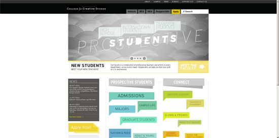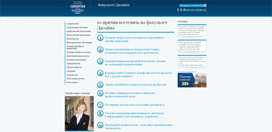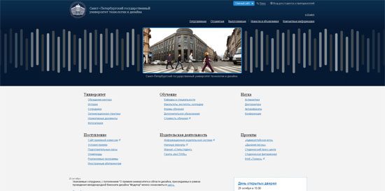 Побродив по однообразным и шаблонным сайтам технических, экономических и юридических российских, украинских и белорусских вузов, у меня зародилась надежда, что — возможно! — дизайнерские вузы сделали себе что-то поинтересней — все-таки, встречаем мы чаще по одежке. Давайте посмотрим, что мне встретилось.
