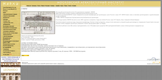 А, кстати, сайт МХПИ очень даже выглядит на общем фоне. Флешевый, яркий. Правда, ни о чем — сайт-визитка, не более, больше подходит районному кружку рисования для детей. За ссылку спасибо.