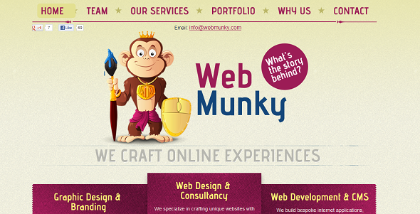 web-monkey.net — ребята не стали загоняться и подчистую стырили дизайн у индусов www.webmunky.com. Даже лица в «Команде» не поменяли)