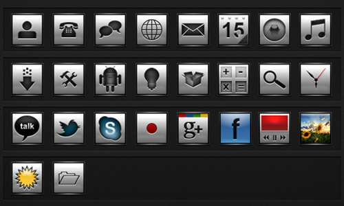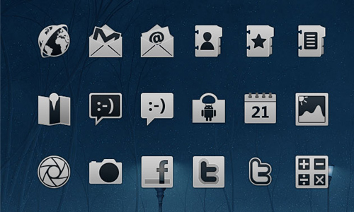 Я встретила здесь иконки в тиле Android для таких приложений, как AK Notepad, Android Comic Viewer, Andoku, Angry Birds, BeyondPod, Browser, Calculator, Calendar, Camera, Clock, Contacts, Dropbox, Facebook, Gallery, Gmail, Google Earth, Last.fm, Maps, Market, Mint, Music, Opera, Phone, Skype, TuneIn Radio, Wapedia, XBMC Remote, YouTube и потом мне надоело перечислять. Смотрите сами, качайте — все они беспланты для некоммерческого пользования.