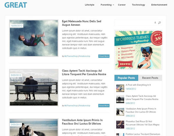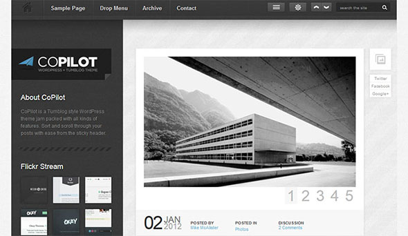 Тема в основном предназначена для блога, но может быть использована и в других случаях.