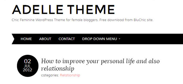 Adelle — симпатичная тема WordPress которая распространяется бесплатно. Отзывчивый дизайн с розовыми и черными акцентами цвета.