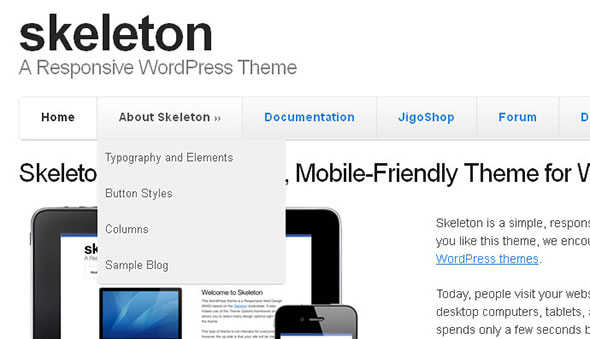 Skeleton — тема, созданная Casey Lee. Простая и отзывчивая тема WordPress.