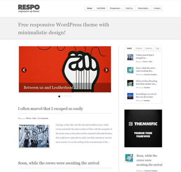 Respo — удивительная тема WordPress с чистым, гладким и настраиваемым дизайном. Тема подходит для личного блоги и/или интернет-журналов.