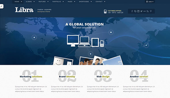 Libra — это мощная корпоративная или портфолио тема с очень большим макетом (1170 пикселей), необычайно отзывчивая. Тема прекрасно вписывается в экраны как ПК, так и экранов смартфонов.