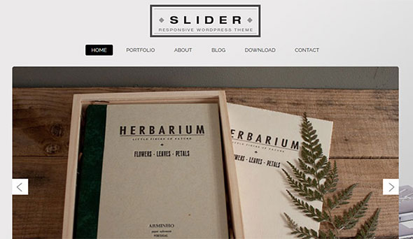 Slider — бесплатная отзывчивая тема с элегантным стилем. Подойдет для портфолио.
