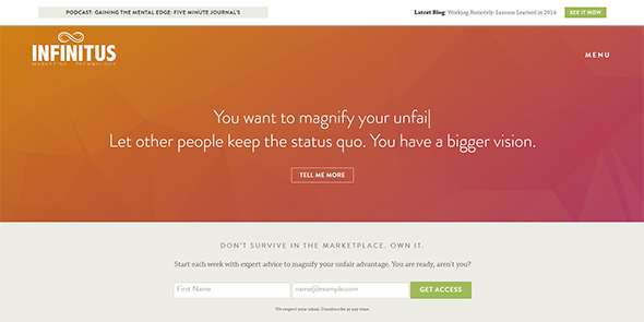 Сегодня мы с вами вдохновляемся сайтами, в дизайне которых использованы градиенты. Они могут размещаться на фоне, или использоваться как полупрозрачное перекрытие. При помощи градиента можно визуально разметить иерархию страницы и в частности отметить особенно важные элементы. Лидерами среди цветов оказались зеленый и голубой.