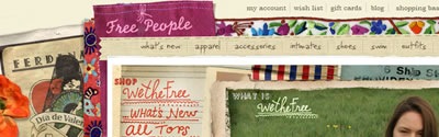 64. Кусочки ткани, вышивка и надписи на хедере сайта FreePeople