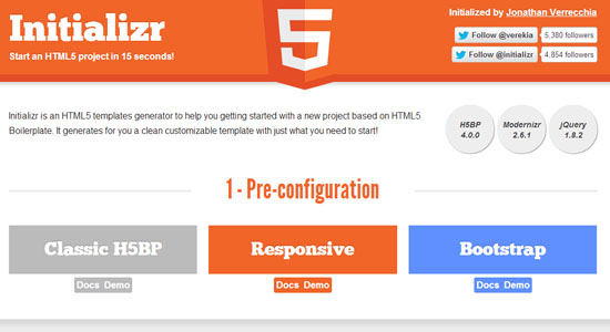 Initializr — HTML5-шаблон, который построен при помощи HTML5 Boilerplate.