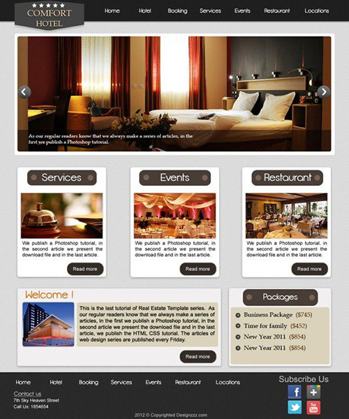Простой урок по созданию макета сайта гостиницы в Photoshop.