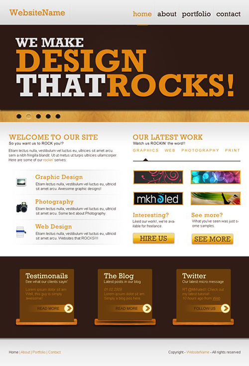 Wooden Grunge Portfolio Web Layout in Photoshop