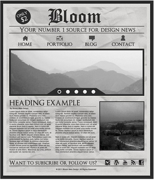 В этом уроке научимся создавать макет веб-сайта газеты в стиле гранж.