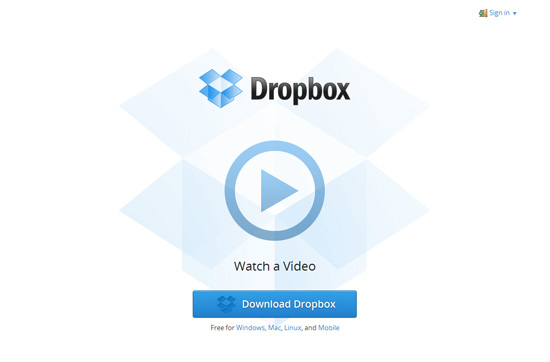 Лэндер Dropboxчрезвычайно простой. Что мы видим на странице? логотип, видео и кнопка- призыв к действию. Основной призыв к действию загрузка программного обеспечения. Вторичный призыв к действию – «посмотреть видео». При этом дополнительный призыв к действию является вспомогательным для основного – «загрузите программное обеспечение, а чтобы узнать подробнее просмотрите видео».