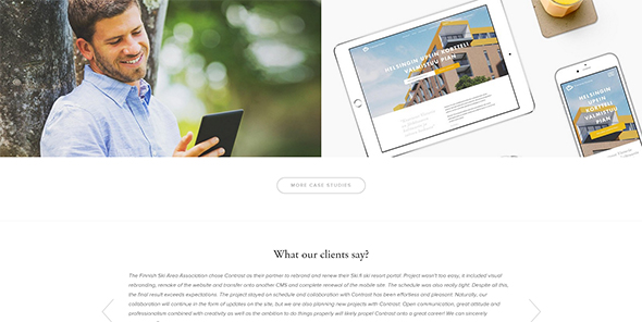 Фотографии в веб-дизайне — не новость. Снимки влияют на пользователей по-разному, в зависимости от содержимого. Однако есть один неоспоримый тренд, который главенствует в мире создания сайтов — это фотографии людей, которые смотрят в монитор. Их используют для того, чтобы показать профессиональность и занятость команды, или для того, чтобы посетитель почувствовал себя на месте парня или девушки у монитора. Сегодня мы собрали примеры ресурсов, в которых участники событий смотрят в монитор.