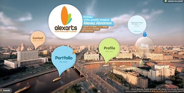 Сайт Alexarts также использует большую фоновую фотографию и графические элементы для оформления.