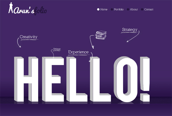 Помимо этого, одной из самых модных тенденций, используемая в веб-дизайне с прошлого года, является красочная, красивая типографика. Например, как на сайте Arunsfolio