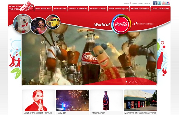 Сайт музея Сoca-Cola (Атланта, США) — это и интересное использование Flash-плеера, и оригинальная навигация по сайту.