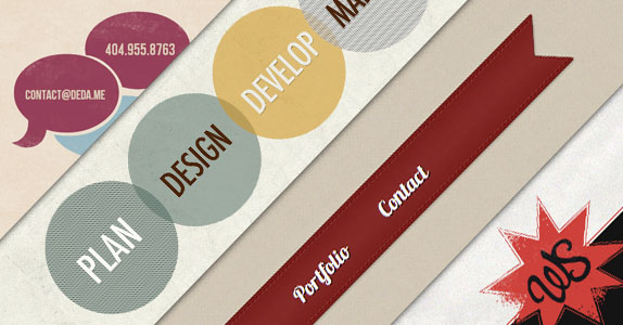 Использование простых форм даёт потрясающий эффект. Для этой цели, как правило, употребляют круги разных размеров. Иногда к таким формам добавляется текстура, очень популярны элементы потёртости.  Формы преимущественно  имеют яркие цвета для привлечения внимания пользователя. Эти методы широко применяются многими дизайнерами для создания отдельного пространства различного содержания. В ретро-дизайне часто используются круглые логотипы, так как многие из них напоминают почтовую печать и различные ленты. Для этой цели вам может пригодиться подборка ретро и винтажных ресурсов.