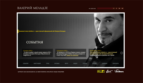Недавно на Дежурке мы опубликовали статью про веб-сайты зарубежных музыкантов. Селебрети всегда пекутся о своем образе и уж конечно заботятся о персональных веб-сайтах. Зарубежный веб-дизайн представляет нам хорошие образцы таких сайтов — это и обширное использование flash, и сss, и широкоформатные фотографии, и видео, и оригинальная навигация. С таких сайтов можно почерпнуть массу новых идей и просто вдохновиться. Чем же хуже русский веб-дизайн? Ничем. Среди сайтов рунета также имеются достойные работы, с которыми мы и предлагаем вам ознакомиться.