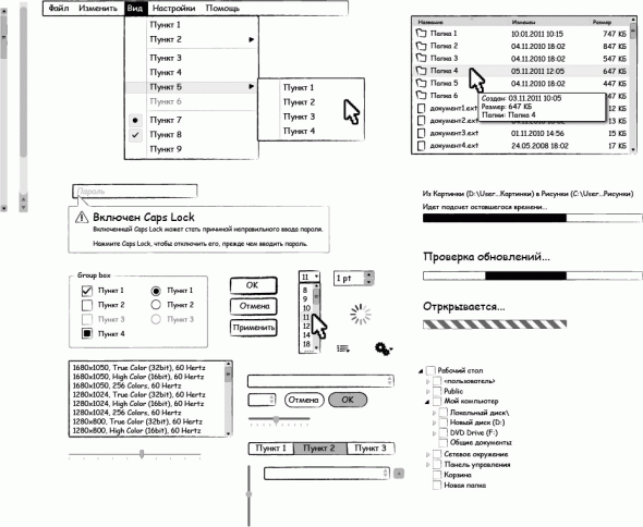 Мы тратим кучу времени на этапе создания каркаса сайта на схематическое изображение будущих компонентов страницы. Для себя их можно отметить просто пустыми прямоугольниками, но наступает момент, когда нужно показать каркас заказчику или провести пару-тройку живых тестов — и приходится либо объяснять на пальцах, либо тратить время на прорисовку похожих на правду элементов. Многие, не желая тратить время на отрисовку, просто вставляют скриншоты или набрасывают наскоро элементы в Dreamweaver, но так мы получаем не вполне опрятную картинку, и неспециалисты чаще всего решают, что «так оно и будет выглядеть», что совсем не идет на пользу общей оценке макета. Дежурка предлагает простой выход — векторные редактируемые заготовки-шаблоны элементов пользовательского интерфейса.