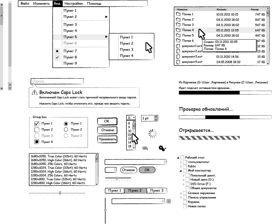 Мэтью Риа, дизайнер интерфейсов и продакт-менеджер, создал в Adobe Illustrator небольшой набор элементов интерфейса пользователя, из которых, как из конструктора можно делать каркасы. Главным плюсом этого набора является то, что все элементы выполнены в стиле быстрого карандашного наброска от руки, что создает у клиента, менеджера и пользователей ощущение эскиза, дает понять, что это не финальный вид. В то же время, этот набор элементов сильно экономит время дизайнера, создающего каркас.