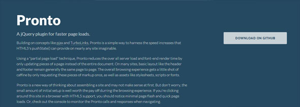 Pronto - плагин, который ускоряет загрузку вашей страницы используя HTML5 и метод pushState.