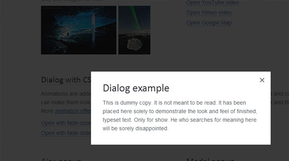 Magnific Popup простое, но очень быстрое и максимально совместимое всплывающее окно.