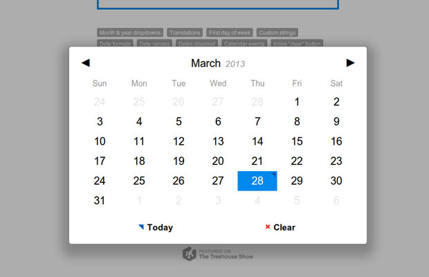 Pickadate.js адаптивный календарь. Его легко использовать и настроить при помощи CSS.