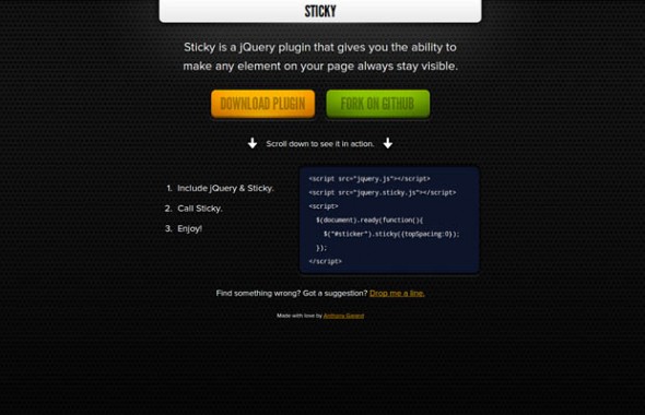 Sticky - это плагин позволяющий любому элементу «приклеиться» и оставаться всегда видимым на странице.