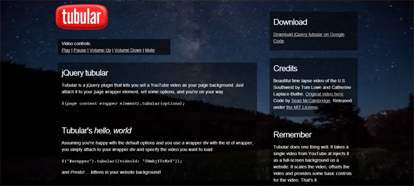 Tubular - плагин, который позволяет вам указать в качестве фона для страницы видео с youtube.