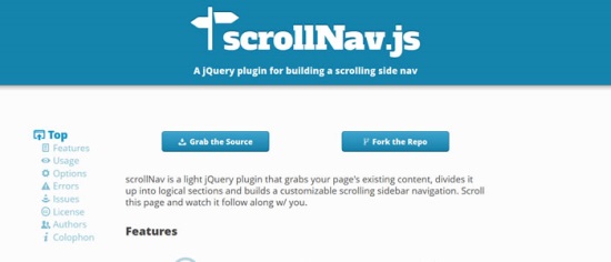 scrollNav - это плагин для бокового меню, которое остается на странице во время скроллинга и выделяет жирным те пункты до которых вы долистали.