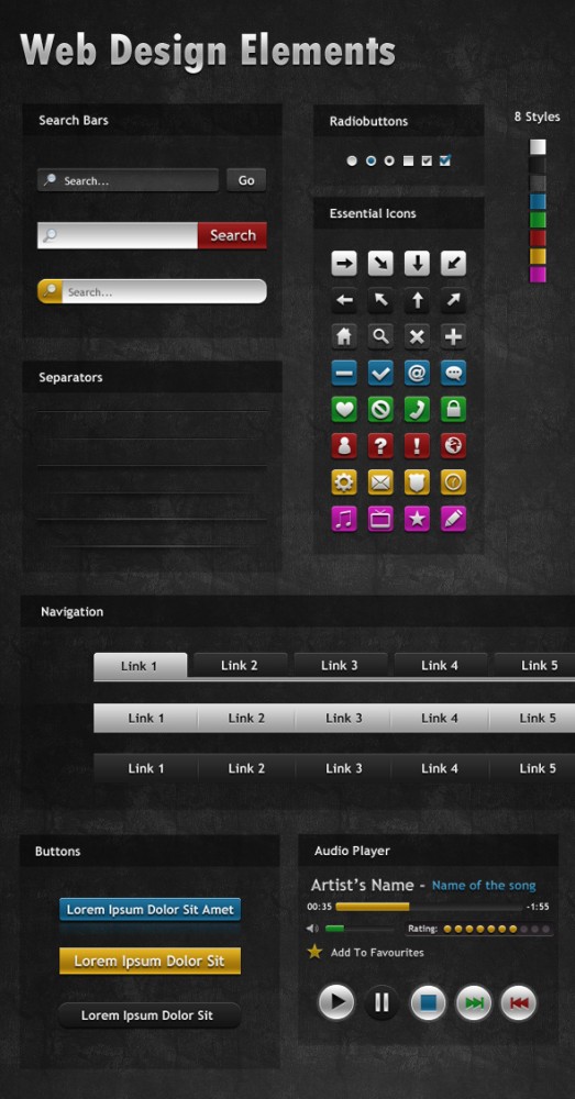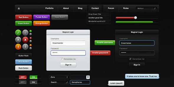 Сегодня мы обратим внимание не на сами сайты, а непосредственно на оформление некоторых элементов веб-интерфейса. Ведь впечатления от сайта зависит от детальной проработки каждого элемента. В этой статье вы сможете не только рассмотреть качественный дизайн контактных форм, кнопок, диалоговых форм, а и скачать некоторые шаблоны, которые в дальнейшем могут вам пригодиться для изготовления макетов. Также их можно использовать, чтобы изучать технику создания тех или иных эффектов.