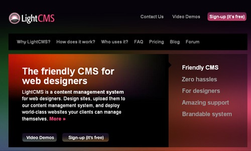 8. Light CMS — еще один отличный пример использования ярких цветов на бекграунде.