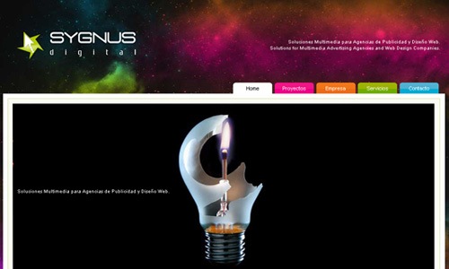 29. Этот сайт (Sygnus Digita) представляет собой микс цветов на темном фоне.