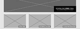Начните с рисования блоков на сетке. Подумайте о информации, которую вы хотели бы представить своим посетителям, на чём следует акцентировать внимание. Ниже приведен пример каркаса, который широко применяется для сайтов программного обеспечения: