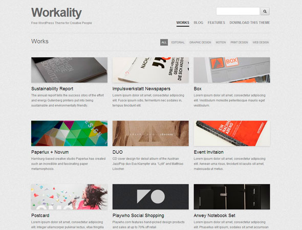 Simple Grid Theme - быстро реагирующая тема для мобильных и планшетных устройств. Подходит для творческих людей или арт-агентств.